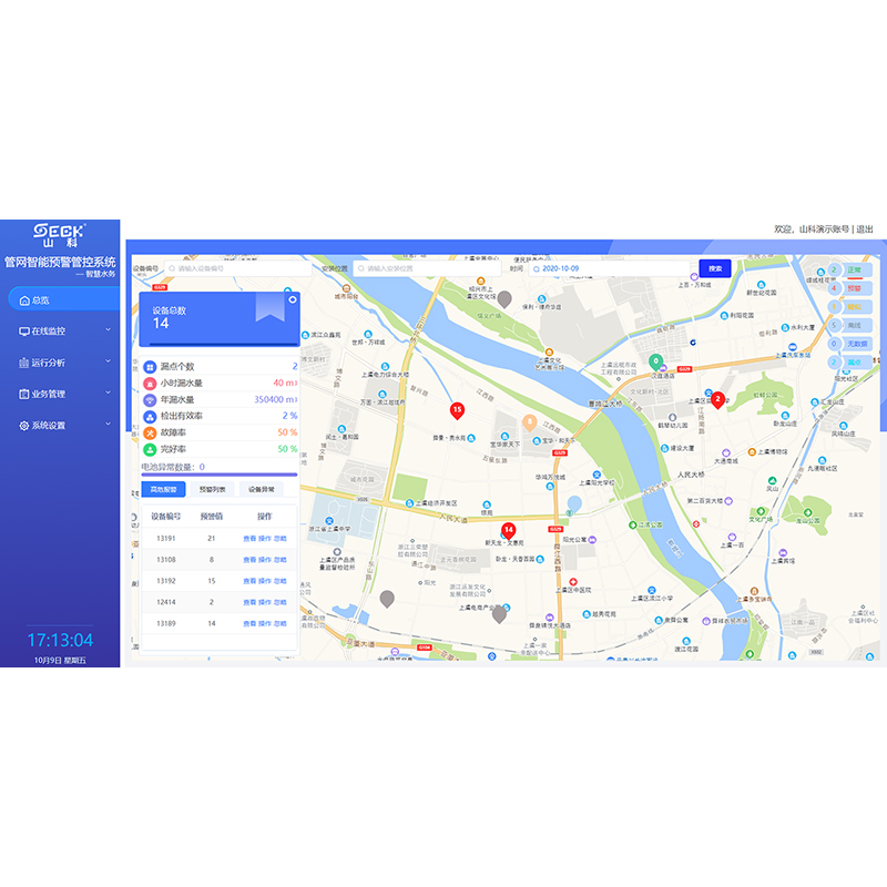 山科智慧水務(wù)平臺(tái)是對(duì)水務(wù)領(lǐng)域進(jìn)行感知物聯(lián)、集成分析、智能決策和展示執(zhí)行的一體化解決方案及系統(tǒng),實(shí)現(xiàn)水務(wù)營(yíng)運(yùn)的整體掌控,確保水務(wù)運(yùn)行安全,降低水務(wù)運(yùn)行漏損及成本,提升人員效益和水務(wù)設(shè)施壽命,提高水務(wù)經(jīng)營(yíng)管理 的核心能力。